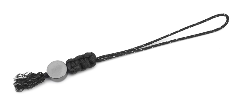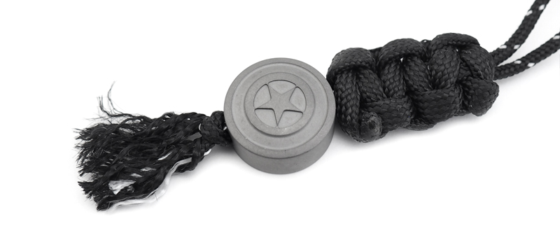Темляк плетёный с бусиной в форме шайбы голубого цвета с изображением звезды в центре. Шнур изготовлен из черного нейлона. Благодаря темляку нож удобно доставать, при диагональном хвате он удлиняет рукоять, а так же служит балансиром для большей управляемости ножа.Плетение: "кобра"