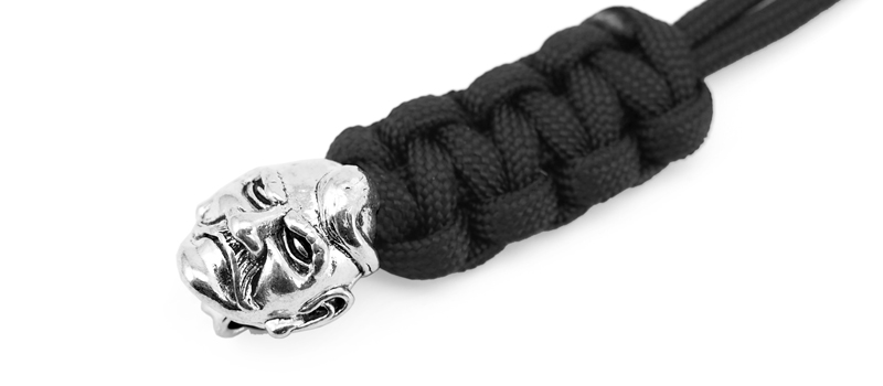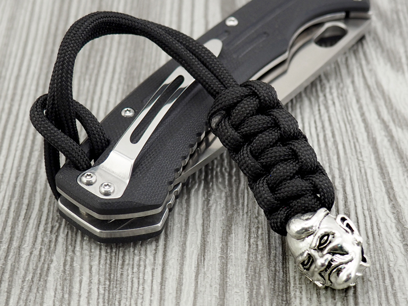 Темляк плетёный с бусиной "Голова казака" серебряного цвета. Шнур изготовлен из черного нейлона. Благодаря темляку нож удобно доставать, при диагональном хвате он удлиняет рукоять, а так же служит балансиром для большей управляемости ножа.Плетение: "кобра"