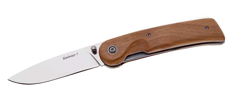 Форма клинка складного ножа "Байкер-1", так называемый тройной клин, в основном предназначена для лучшего проникновения внутрь разрезаемого материала, но также выдерживает высокие нагрузки при ударах, и нагрузки «на излом».Сталь АUS-8 твёрдость 57-59 HRC, японская нержавеющая сталь золотая середина среди всех ножевых сталей, хорошо держит остроту, легко поддаётся заточке даже подручными средствами, хорошие показатели ударных нагрузок. При не высокой цене, это отличный выбор как профессионалов, так и любителей.Не указан форум для отзывов.