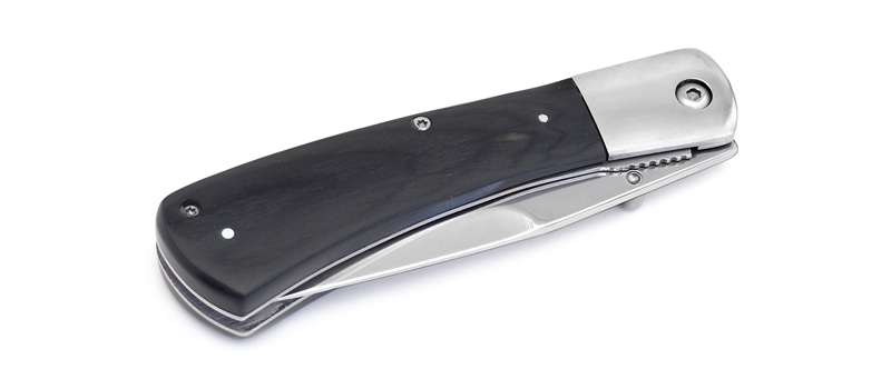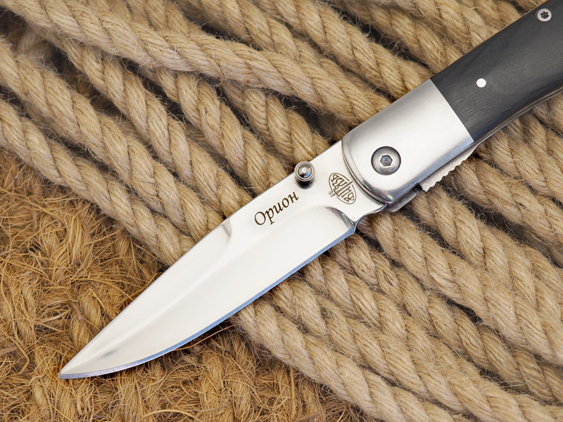 «Орион» - универсальный складной нож. Клинок с понижением линии обуха выполнен из прочной нержавеющей стали. Он хорошо режет и колет, эффективно сопротивляется коррозии. «Орион» легко открывается одной рукой благодаря специальному шпеньку для большого пальца. Рукоять укреплена больстером из полированной стали, деревянные накладки обработаны влагозащитной пропиткой.