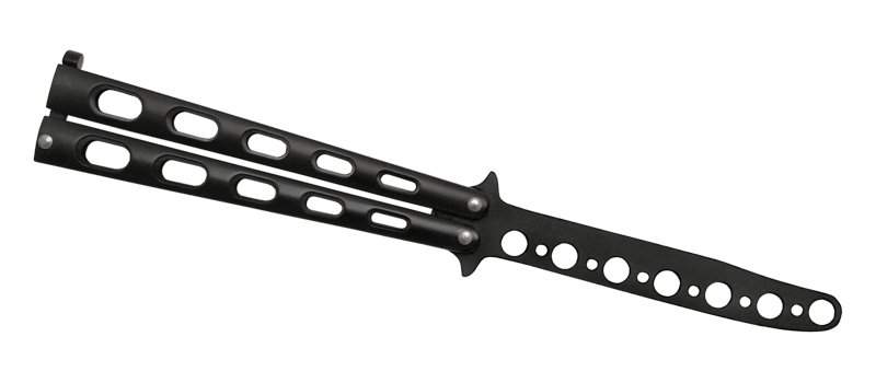 Тренировочный нож-бабочка. Он прост, практичен и надежен. Конструктивно полностью соответствует традиционному балисонгу, однако вместо клинка здесь металлическая пластина со скругленными краями, лишенная лезвия. Эта «бабочка» рассчитана на достаточно жесткие силовые тренировки, однако сводит опасность травмы к минимуму. Черное покрытие эффектно выглядит, а также дополнительно защищает металл от коррозии.Не указан форум для отзывов.