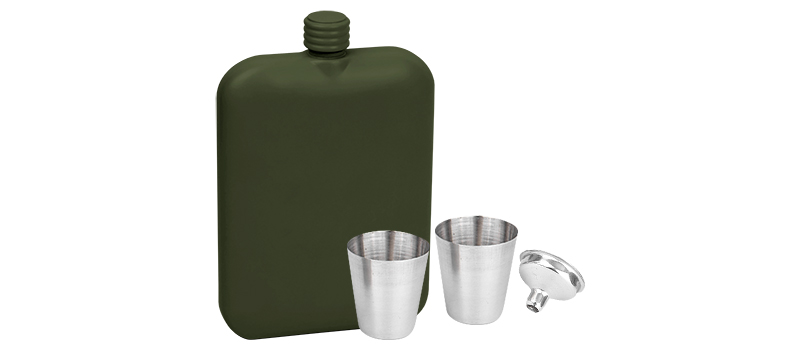 Подарочный набор, состоящий из карманной фляги ёмкостью 230 мл, двух стаканчиков по 25 мл и воронки. Изготовлен набор из нержавеющей стали. Форма фляги имеет эргономичную форму и легко помещается в карман пиджака или брюк. Поставляется в подарочной коробке.Не указан форум для отзывов.