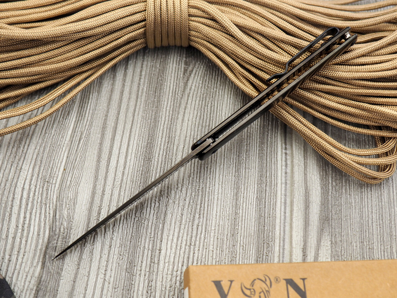 Новый нож от компании "VN Pro" происходит от короткого японского клинка кайкен, отличительными особенностями которого являются тонкий профиль, компактность, а также непременная острота. Клинок использовался самураями, мужчинами и женщинами в случаях, когда более длинное оружие - катана или вакидзаси - было непрактично, а защита собственной жизни требовала решительных действий. Клинок ножа изготовлен из нержавеющей стали Aus8, которая сочетает в себе стойкость к коррозии, высокую твёрдость и пластичность. Высокие от обуха спуски дают клинку прекрасные режущие свойства. Удобство открывания обеспечивает выступ на пяте клинка-"флиппер" который позволяет открыть нож лёгким движением пальца. В раскрытом состоянии флиппер образует развитый подпальцевый упор, а замок типа "frame-lock" обеспечивает надёжную защиту от складывания. Рукоять ножа полностью выполнена из стали, имеет классический прямой силуэт с небольшой подпальцевой выемкой. Для удобства ношения нож оснащён удобной клипсой.Не указан форум для отзывов.