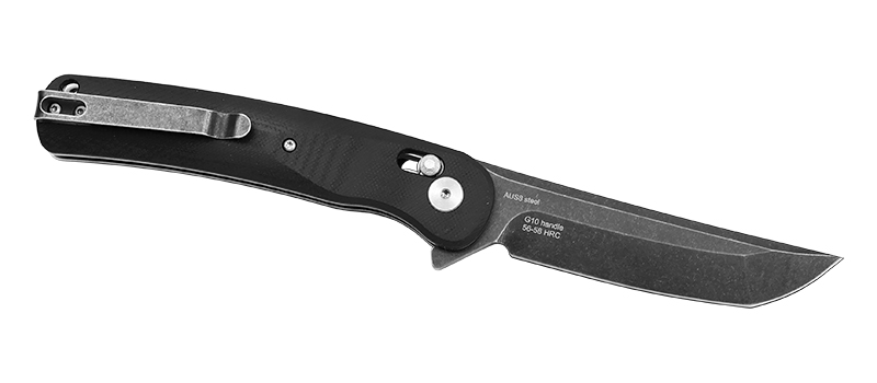 Складной нож с фиксатором типа axis-lock. Клинок изготовлен из высококачественной легированной стали и имеет форму типа american tanto. Рукоять ножа разборная, сделана на основе стальных лайнеров с установленными накладками из композита G10. Благодаря подшипникам и выступу на пяте клинка, так называемому «флипперу», нож мгновенно открывается лёгким движением пальца. Для удобства использования на ноже имеется широкое темлячное отверстие и надёжная клипса.Не указан форум для отзывов.