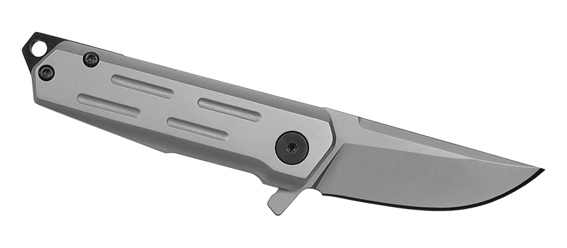 Небольшой складной нож с фиксатором от компании "Мастер Клинок". Клинок типа "normal-blade" изготовлен из легированной нержавеющей стали 8Cr13MoV, закален до твердости 57-59 HRC. На клинке защитное титановое покрытие. Нож легко открывается одним движением с помощью флиппера. Удобная стальная рукоять, так же как и клинок, имеет дополнительно титановое покрытие для большей коррозионной стойкости. Для удобства использования нож оснащён темлячным отверстием. Прочный и удобный нож- отличный подарок!Не указан форум для отзывов.