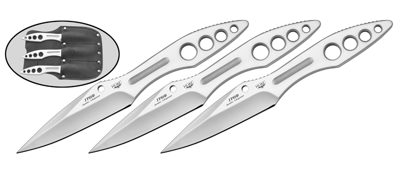 Спортивный нож «Гриф», модель 716, от компании НОКС. Такой инструмент в первую очередь требует максимальной прочности. Потому нож выполнен из высокопрочной нержавеющей стали с высокой ударной вязкостью. В рукояти имеется ряд отверстий, которые улучшают баланс без потери прочности конструкции. "Гриф"- хороший спортивный снаряд, который при желании можно использовать как обычный нож со скелетной рукоятью. Прочный чехол из кожи в комплекте. Нож относится к серии "С", специальной спортивной серии компании. Поставляется в подарочной коробке. Отличный выбор и для себя, и для подарка. Дизайн- А. Бирюков.Не указан форум для отзывов.