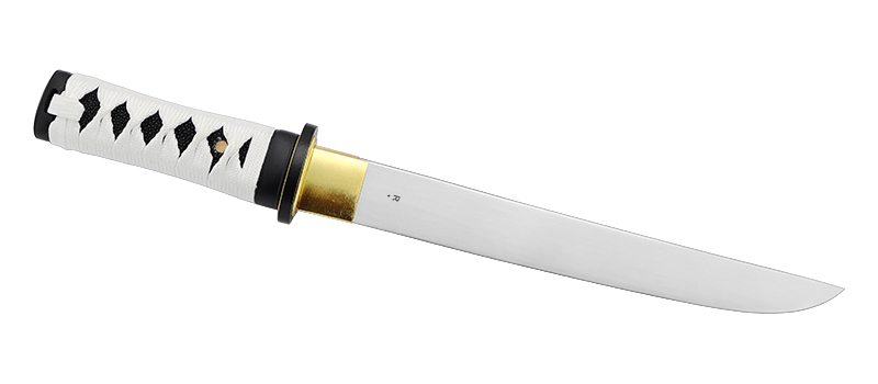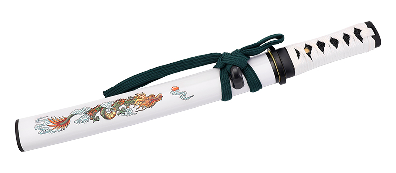 Стильный изящный айкути, сделанный в традиционном японском стиле. Клинок типа "real tanto" изготовлен из нержавеющей стали, которая обладает повышенной устойчивостью к коррозии и закален до твердости не более 25 ед. HRC. Рукоять и ножны сделаны из дерева и декорированы в сдержанных тонах. Ножны украшены рисунком с изображением дракона. Строгий и изящный он станет отличным украшением интерьера. Это сувенирное изделие, не предназначенное для реальной эксплуатации. Оригинальный подарок!