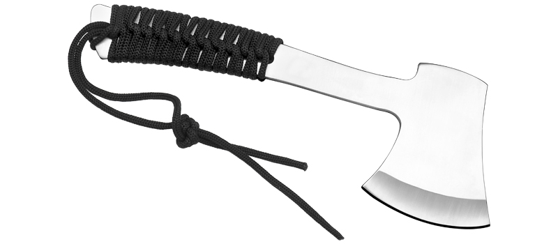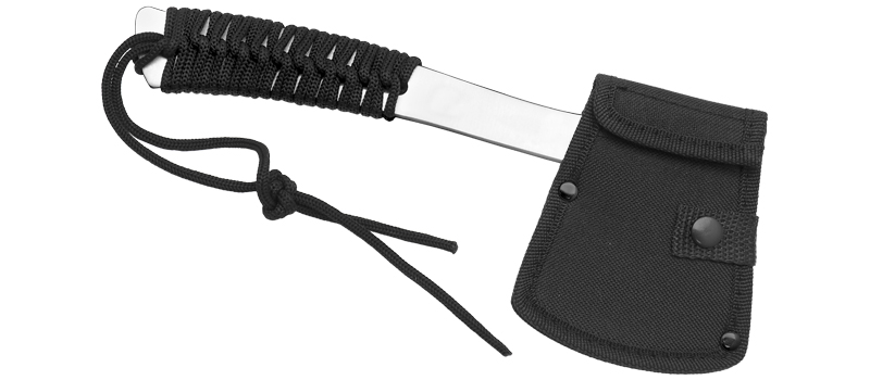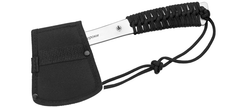 Небольшой туристический топорик, изготовленный из цельной стальной полосы толщиной 4 мм. Для удобства использования рукоять обмотана нейлоновым шнуром. Комплектуется удобным нейлоновым чехлом. Топорик с успехом можно использовать для развлечения, выездов на природу, на даче или на кухне для разделки мяса или рыбы.Не указан форум для отзывов.