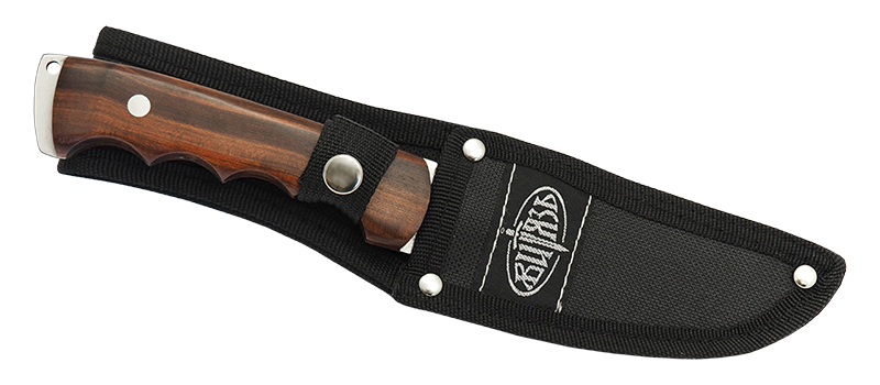 «Алтай» - нож охотника и туриста, который удачно совмещает функциональность и красоту. Клинок выполнен из легированной нержавеющей стали и украшен рисунком. Рукоять собрана по принципу «full tang» с накладками из твердых пород дерева, имеет отверстие для темляка. Обратите внимание на хорошо выраженные подпальцевые выемки. Благодаря им нож очень удобен в работе. Нож комплектуется удобными ножнами и может служить отличным подарком.Не указан форум для отзывов.