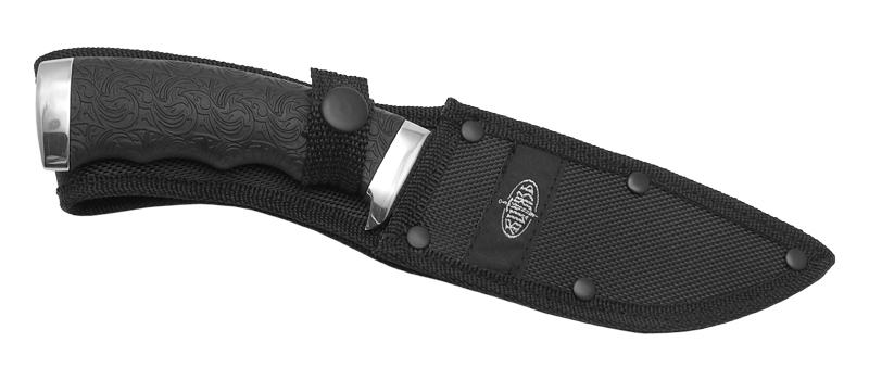 «Плёс» - охотничий нож, практичный и весьма удобный. Широкий клинок выполнен из легированной нержавеющей стали, имеет высокие спуски, а также оптимальную форму для эффективного укола и реза. Резиновая рукоять с эргономичными выемками под каждый палец усилена стальной гардой и навершием. Рифление на рукояти выполнено в виде тонкого и изящного декора. Нож комплектуется удобными ножнами и может служить отличным подарком.