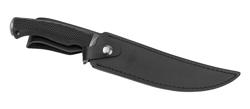 Полевой нож от компании «Витязь». Клинок типа «trailing-point» изготовлен из проверенной ножевой стали 8Cr13MoV, сочетающей в себе прочность и коррозионную стойкость и закален до твердости 57-59 HRC. Для дополнительной защиты от коррозии на клинок нанесено тёмное защитное покрытие с последующей галтовкой (stone wash). Удобная рукоять из твердой морозостойкой резины. Для удобства использования нож комплектуется прочным чехлом из натуральной кожи. Нож эффектно выглядит и может служить отличным подарком.