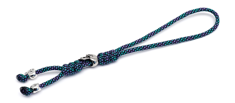Темляк плетёный с тремя бусинами в форме черепа серебристого цвета. Шнур изготовлен из цветного нейлона. Благодаря темляку нож удобно доставать, при диагональном хвате он удлиняет рукоять, а так же служит балансиром для большей управляемости ножа.