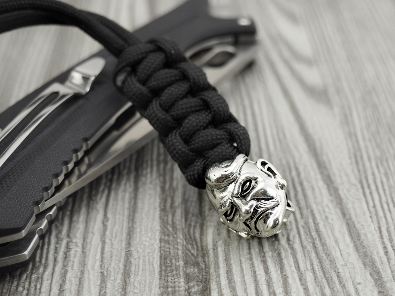 Темляк плетёный с бусиной "Голова казака" серебряного цвета. Шнур изготовлен из черного нейлона. Благодаря темляку нож удобно доставать, при диагональном хвате он удлиняет рукоять, а так же служит балансиром для большей управляемости ножа.Плетение: "кобра"