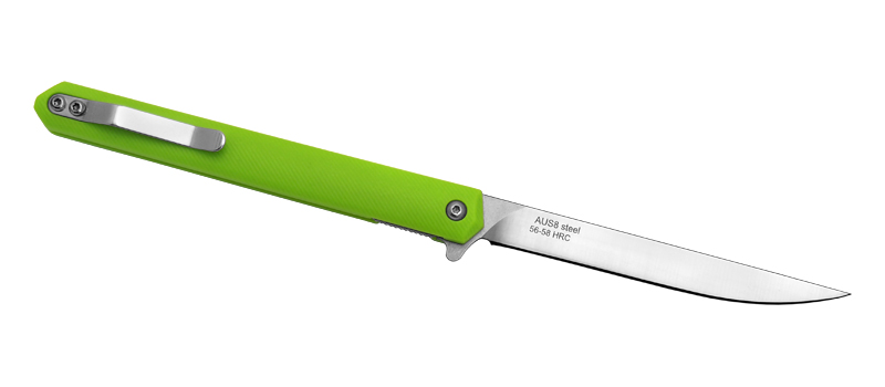 Городской складной нож от компании 'VN Pro'. Клинок типа 'normal blade' изготовлен из проверенной ножевой стали AUS8, сочетающей в себе прочность и коррозионную стойкость, закален до твердости 57-59 HRC. Замок типа "liner-lock" надежно фиксирует клинок в раскрытом положении. Нож легко открывается одним движением с помощью флиппера. Осевой узел собран на стальных подшипниках, благодаря чему клинок легко и плавно раскрывается. Удобная рукоять имеет накладки из soft-touch ABS пластика. Клипса позволяет легко зафиксировать нож в кармане или на рюкзаке. Нож стильный и современный- отличный выбор!Не указан форум для отзывов.