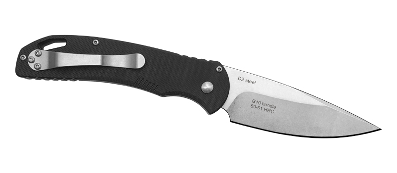 KA001D2 «Resident» - автоматический складной нож. У «Резидента» довольно широкий клинок типа «Drop Point» с высокими спусками. Несмотря на умеренную длину, он обладает отличными режущими свойствами. Клинок скрывается в рукояти, сделанной из прочного и надежного G10 с отверстием для темляка. Для большей надежности «Резидент» снабжен предохранителем, который страхует от случайного нажатия кнопки выброса клинка.Не указан форум для отзывов.