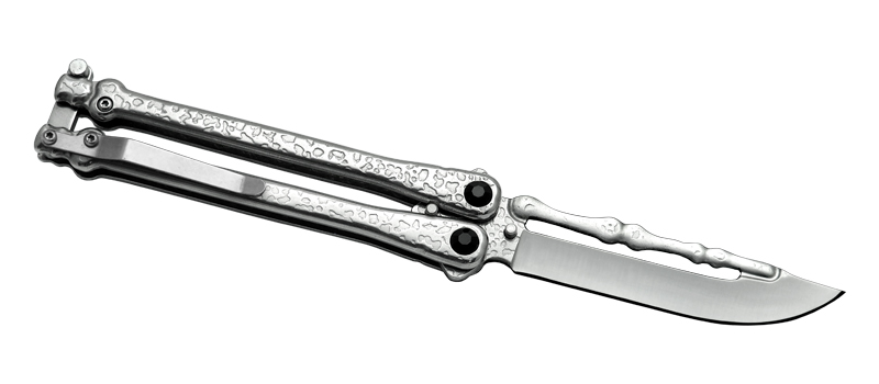 «Богомол» это традиционный нож бабочка, имеющий необычное исполнение, оригинальный дизайн. Нож сделан из высококачественной нержавеющей стали, которая хорошо сопротивляется коррозии, эффективна в использовании, долго держит заточку. Цельнометаллическая конструкция обеспечивает Богомолу прочность и долгую службу. Дизайн имеет макабрические мотивы, что придаёт ему оригинальный, запоминающийся образ без потери функциональности. Для удобства использования нож комплектуется нейлоновым чехлом.Не указан форум для отзывов.