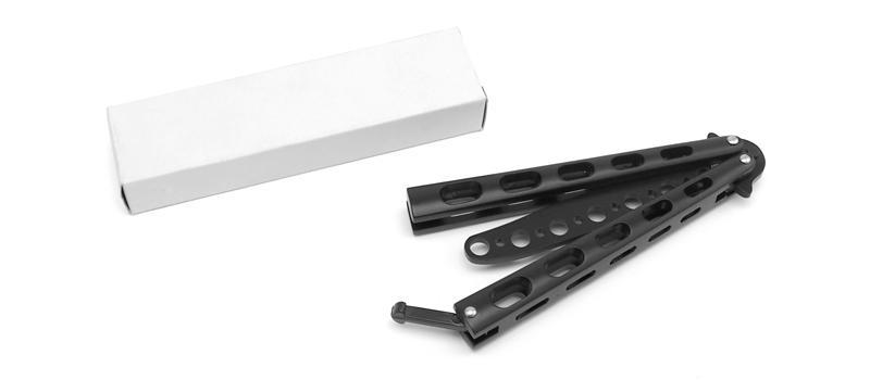 Тренировочный нож-бабочка. Он прост, практичен и надежен. Конструктивно полностью соответствует традиционному балисонгу, однако вместо клинка здесь металлическая пластина со скругленными краями, лишенная лезвия. Эта «бабочка» рассчитана на достаточно жесткие силовые тренировки, однако сводит опасность травмы к минимуму. Черное покрытие эффектно выглядит, а также дополнительно защищает металл от коррозии.Не указан форум для отзывов.