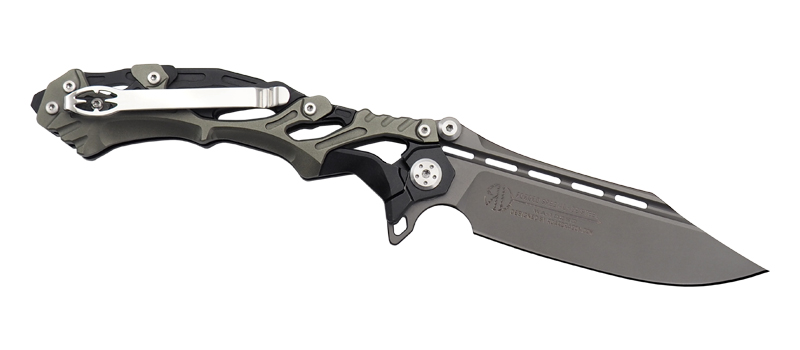 Складной тактический нож с замком Frame Lock скелетного типа. Подойдёт людям, которым нравится "открытая архитектура". Клинок изготовлен из легированной стали марки D2 и покрыт титановым напылением серого цвета. Для удобства ношения на ноже установлена надёжная клипса.Не указан форум для отзывов.