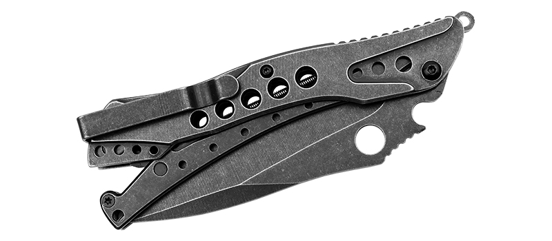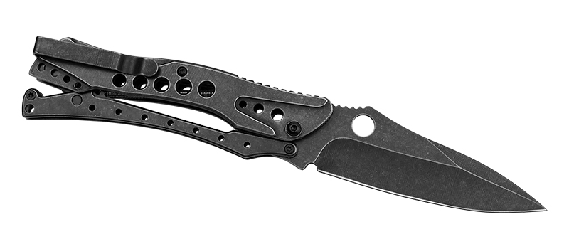 Городской фолдер от компании "Мастер Клинок". Клинок типа 'spear-point' изготовлен из легированной нержавеющей стали 7Cr13, закален до твердости 56-58 HRC. Обработка клинка- "black stone-wash". Механизм раскрытия- полуавтоматический, имеет оригинальную рычажно- шарнирную конструкцию. Благодаря этому нож легко открывается одним движением. Осевой узел собран на стальных подшипниках. Удобная рукоять выполнена из стали. Надежный чехол из нейлона. Клипса позволяет легко зафиксировать нож в кармане или на рюкзаке. Прочный и удобный нож- отличный подарок!