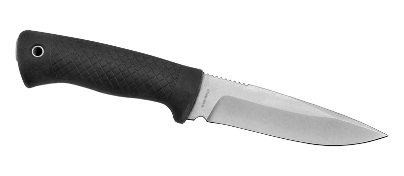 «Гремлин-2» - легкий тактический нож. Клинок выполнен из высокопрочной стали, он имеет классическую форму с постепенным схождением обуха и лезвия. На основании обуха есть специальная насечка для большого пальца, если необходимо приложить дополнительное усилие. Рукоять резинопластиковая, с отверстием для темляка и мелким рифлением, она долговечна и не скользит в руке. Нож комплектуется удобными ножнами из кожи.Не указан форум для отзывов.