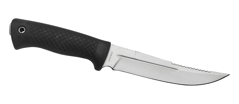 «Тарпан» - универсальный походный нож. Длинный, слегка изогнутый клинок выполнен из прочной стали, он очень функционален и устойчив к неблагоприятным воздействиям среды. На обухе имеются зубцы для чистки рыбы, а также насечка для большого пальца, если необходимо приложить дополнительное усилие. Рукоять резинопластиковая, с отверстием для темляка и мелким рифлением, она долговечна и не скользит в руке. «Тарпан» пригодится туристу, рыболову, путешественнику. Нож комплектуется удобными ножнами из кожи.