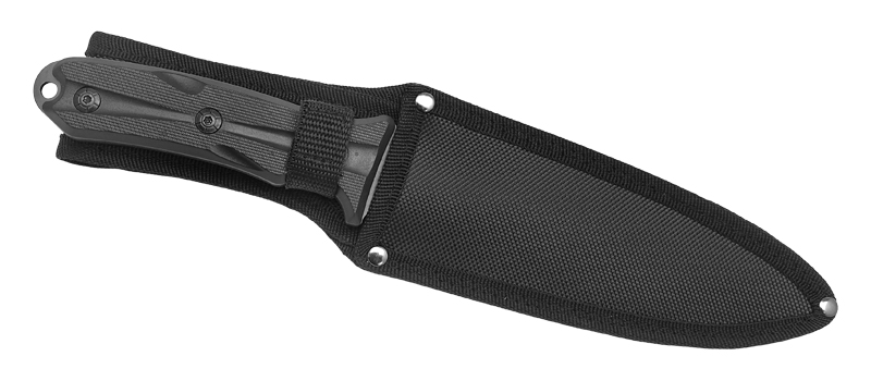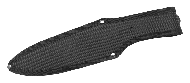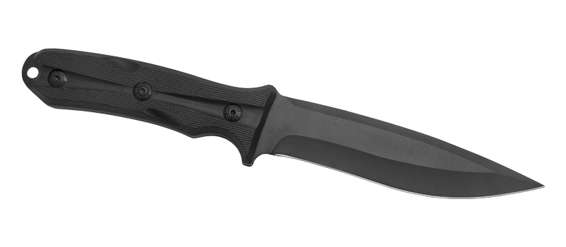 Универсальный полевой нож. Широкий листовидный клинок сделан из нержавеющей стали, имеет покрытие чёрного цвета для дополнительной защиты от коррозии. Небольшая рекурва повышает режущие свойства, а понижение линии обуха формирует почти кинжальное остриё. Рукоять собрана по типу «full tang» с накладками из прочного пластика на металлической пластине. Это самый прочный способ монтажа рукояти. Укомплектован удобными ножнами.Не указан форум для отзывов.